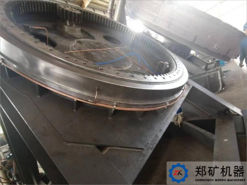 我司簽訂的湖北客戶120萬噸/年半水磷石膏綜合利用項目中圓盤造球機設備,其傳動部分不同于同系列一般造球機設備,利用回轉(zhuǎn)支撐裝置代替常規(guī)的齒輪組嚙合傳動,其安裝更簡單方便、易于操作封閉式的殼體,更容易維修,安全性、可靠性較高結構更加緊湊,更耐用,動力源可選。回轉(zhuǎn)支承是介于機架與上部回轉(zhuǎn)盤體間作相對回轉(zhuǎn)運動的傳力原件,用于支承上車體質(zhì)量和承受工作載荷,共內(nèi)座圈鏈接下機體,外座圈鏈接上盤體,內(nèi)座圈上的內(nèi)齒圈與回轉(zhuǎn)小齒輪嚙合。當回轉(zhuǎn)齒輪轉(zhuǎn)動時,通過小齒輪帶動上盤體回轉(zhuǎn)。